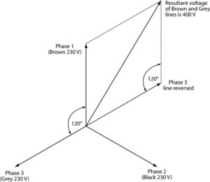 - The voltage – counter-intuitively this is taken to be the value of a single-phase supply (230 V)